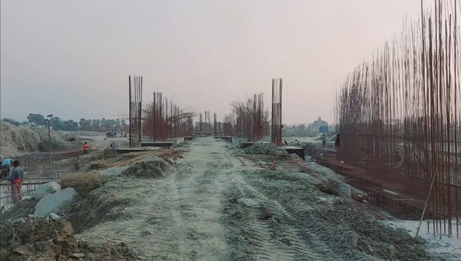 विराट रामायण मंदिर के लिए नींव और पिलर का काम तेजी से किया जा रहा है।