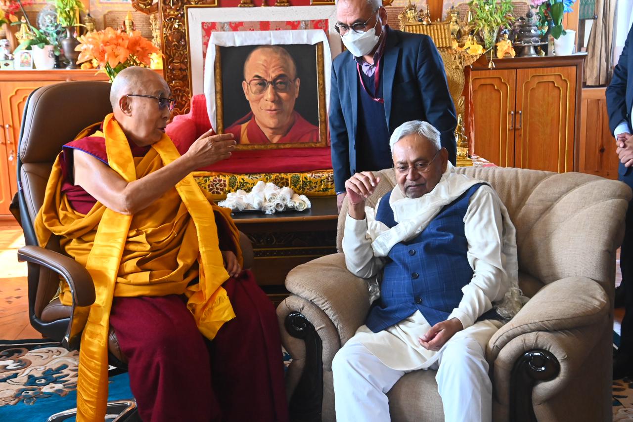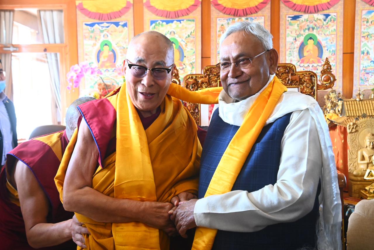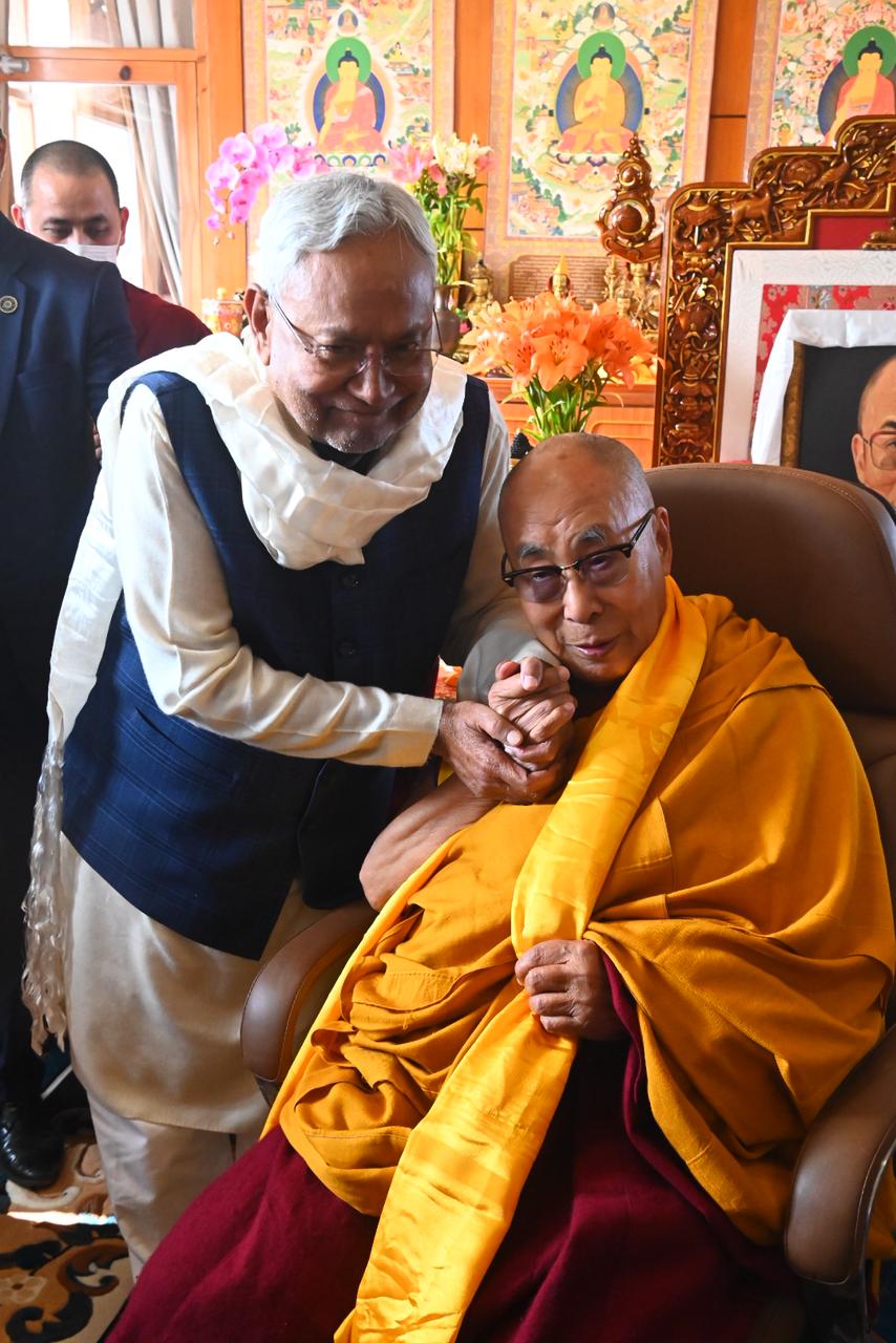 नीतीश कुमार ने गर्मजोशी से की दलाई लामा से मुलाकात।