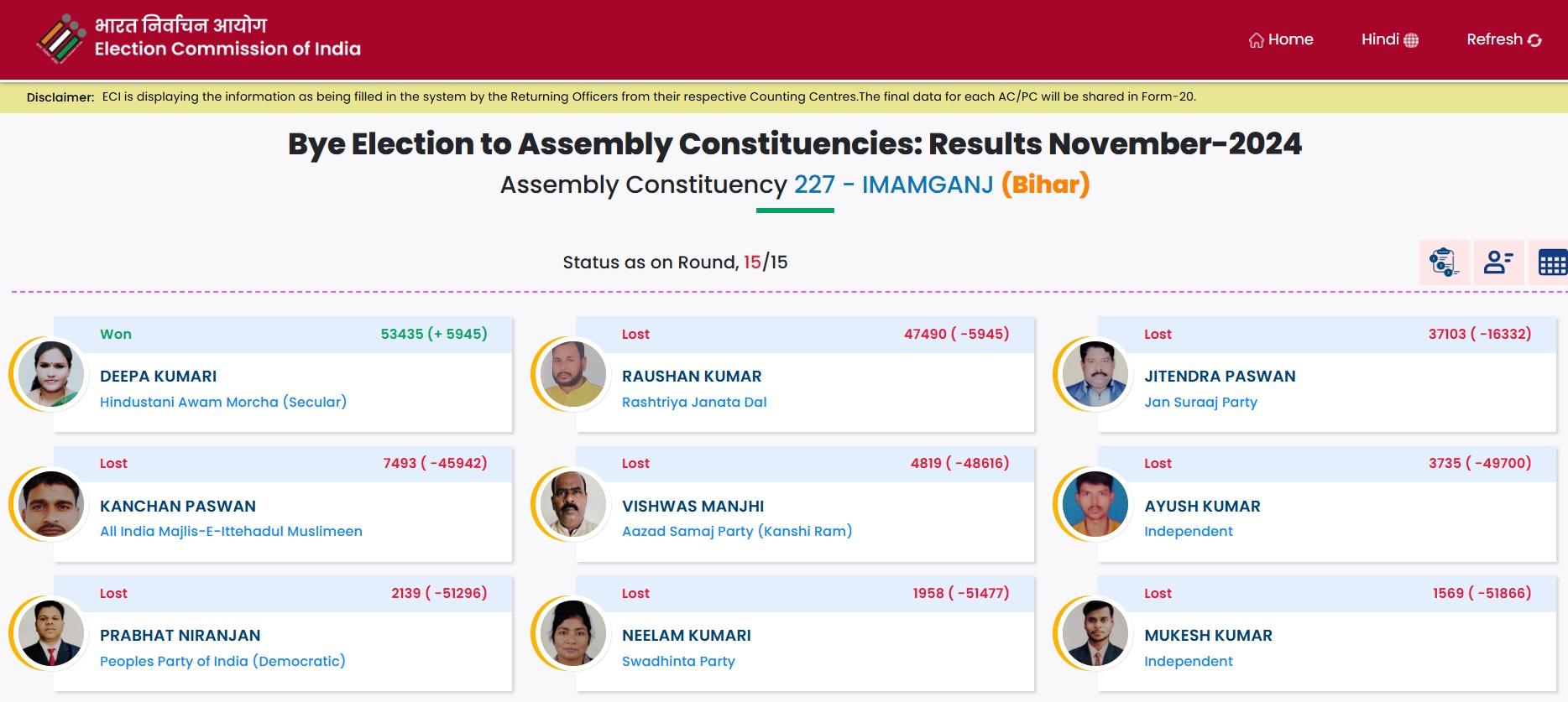 Imamganj Upchunav Result 2024: इमामगंज में जीतन राम मांझी की बहू जीतीं, प्रशांत किशोर और तेजस्वी को झटका
