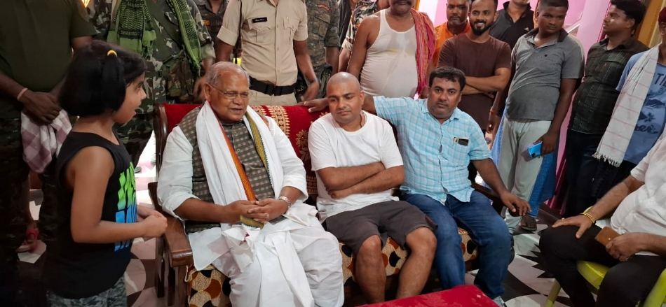 शोकाकुल परिवार से मिलते केंद्रीय मंत्री जीतन राम मांझी। फोटो- जागरण