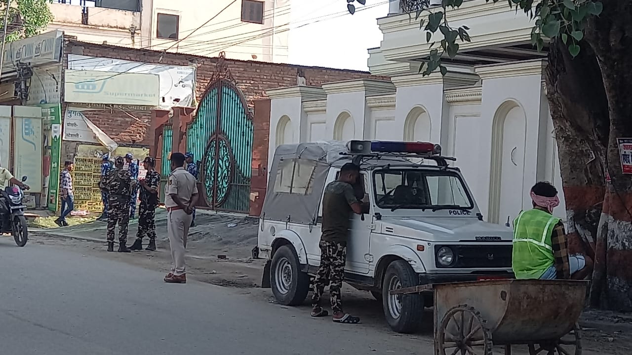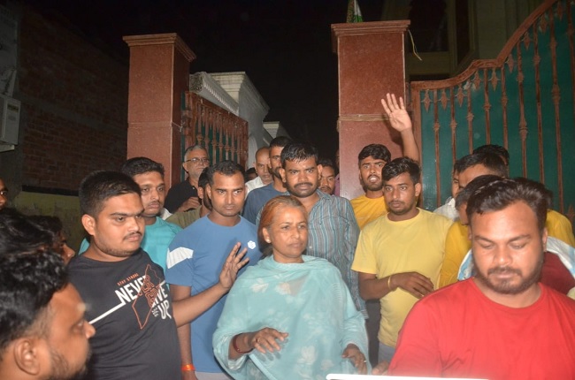 गया में एनआईए टीम के जाने के बाद बाहर आई पूर्व एमएलसी मनोरमा देवी, स्वजन और कर्मचारी।