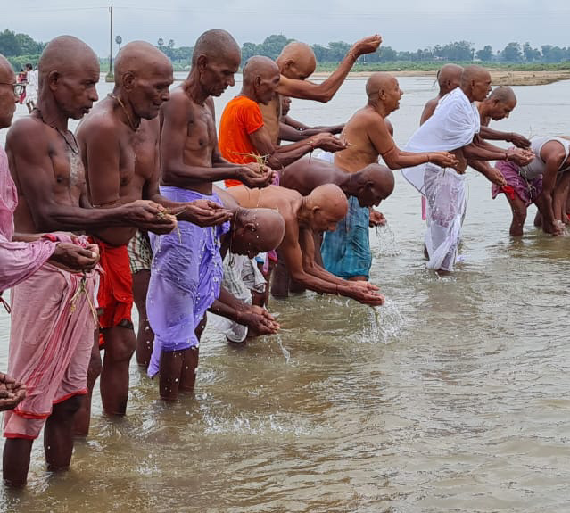 बोधगया के मोहाने नदी में तर्पण करते लोग