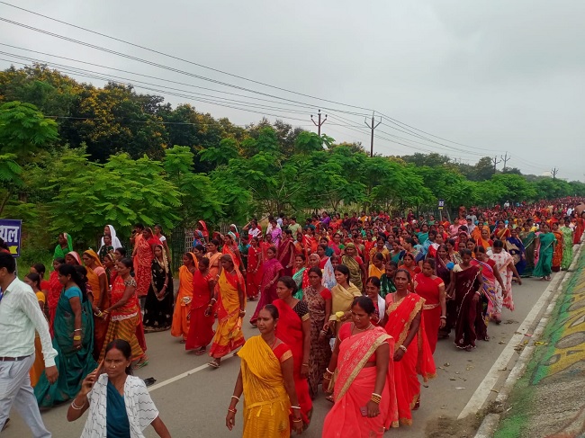 कार्यक्रम स्थल की ओर भारी मात्रा में जाती महिलाएं।