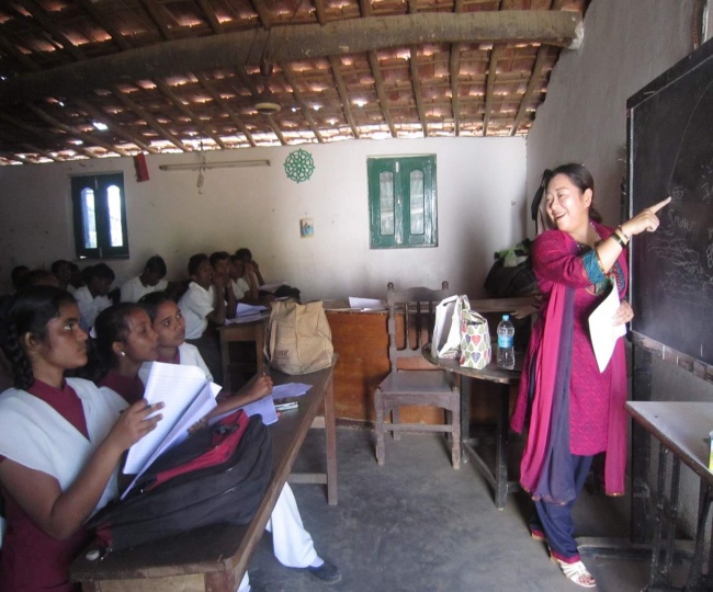 (स्कूल में बच्चों को पढ़ातीं यूकी।)