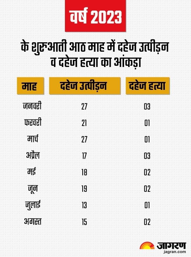 इस साल दहेज प्रताड़ना के आंकड़े पर गौर करें तो वर्ष 2023 के शुरुआती आठ माह में 68 आपराधिक मामले विभिन्न थानों में दर्ज किए गए। इसके अलावा पुलिस के स्तर पर कार्रवाई नहीं करने पर 89 महिलाओं ने कोर्ट में परिवाद पत्र दाखिल कर ससुराल के लोगों पर दहेज के लिए प्रताड़ित करने का आरोप लगाया।