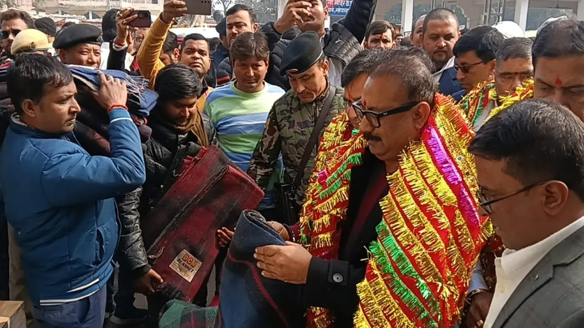 गोपालगंज में कंबल वितरण करते अशोक चौधरी। जागरण
