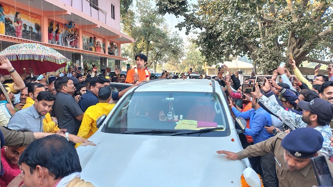 पं. धीरेंद्र कृष्ण शास्त्री के रामनगर पहुंचने पर उमड़ी लोगों की भीड़।