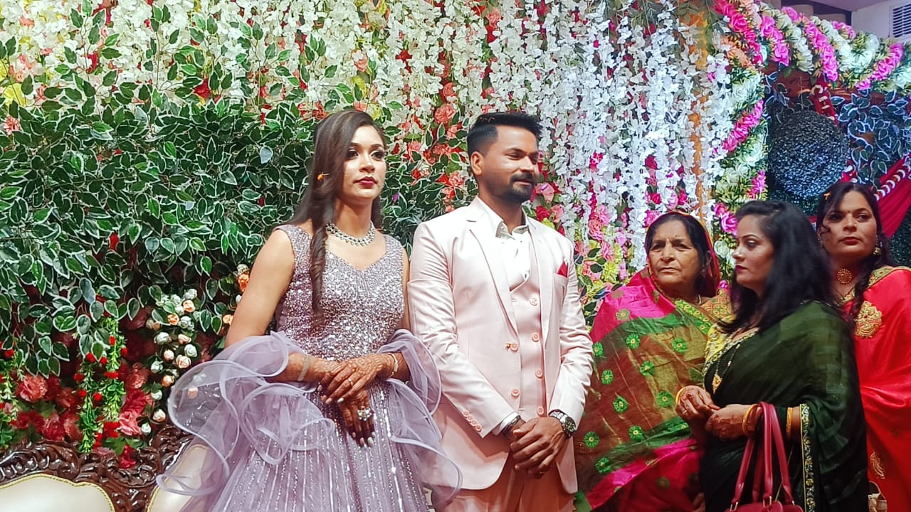 भारत के तेज गेंदबाज मुकेश कुमार ने मंगलवार की रात दिव्या के साथ परिणय सूत्र में बंध गए। यूपी के गोरखपुर के एक होटल में बिहार के चमकते सितारे की शादी धूम-धाम से हुई। दिव्या सिंह ने क्रिकेटर मुकेश कुमार से शादी के लिए टीचिंग छोड़ दी। वहीं शादी के दौरान पवन सिंह के गाने पर जमकर ठुमके लगाए। इसका वीडियो सोशल मीडिया पर वायरल हो रहा है।