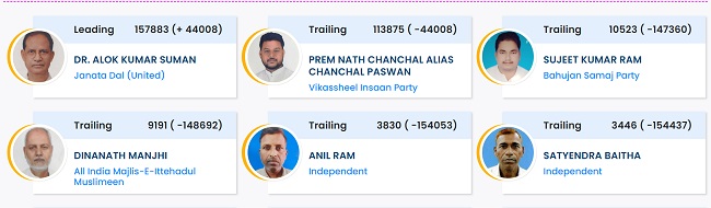 - डॉ. आलोक कुमार सुमन, जदयू - 157883 वोट