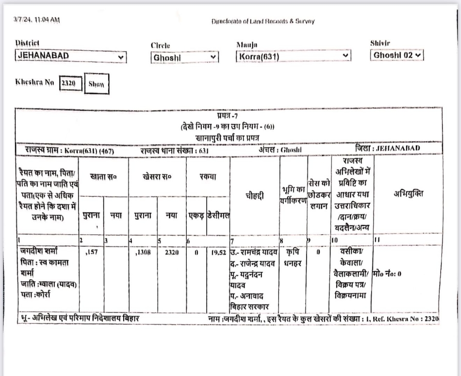 राजनीतिक दिग्गज के साथ भी जमीन सर्वे में बड़ी गलती की गई है। सर्वे के अभिलेख में रैयत जगदीश शर्मा पिता स्व. कमाता शर्मा की जाति ग्वाला (यादव) दर्शाया गया है, जबकि पूर्व सांसद डॉ. जगदीश शर्मा भूमिहार जाति से आते हैं।