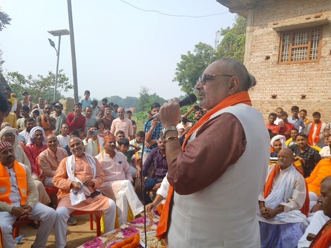 सभा काे संबोधित करते केन्द्रीय मंत्री गिरिराज सिंह।