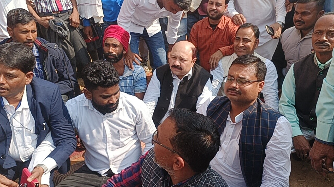 चिराग के सामने धरने पर बैठे कार्यकर्ता। फोटो- जागरण