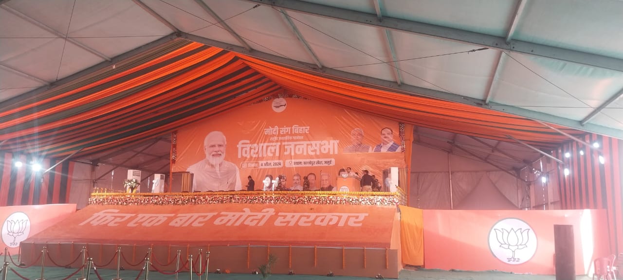संवाद सहयोगी, जमुई। प्रधानमंत्री नरेन्द्र मोदी गुरुवार को जमुई में लोजपा प्रत्याशी अरुण भारती के समर्थन में चुनावी सभा को संबोधित करेंगे। इसके पहले भी प्रधानमंत्री ने बल्लोपुर के ही मैदान पर 2019 के लोकसभा चुनाव में चिराग पासवान के समर्थन में चुनावी सभा की थी। सभा को लेकर सारी तैयारियां पूरी कर ली गई हैं।