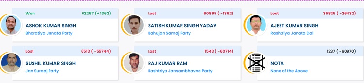 | अशोक कुमार सिंह | भारतीय जनता पार्टी | 62257 |
