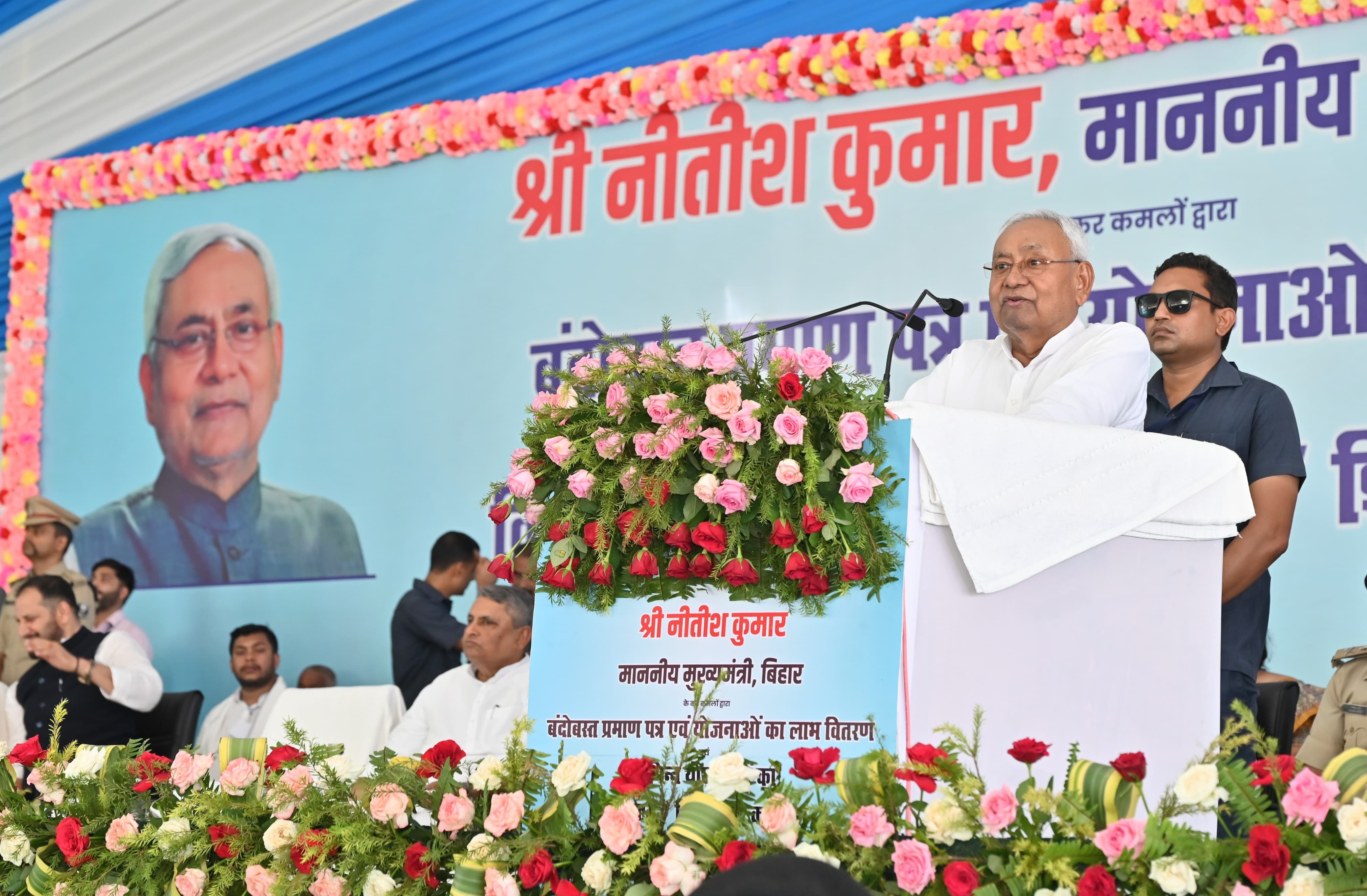 इस मौके पर मंचासीन मुख्यमंत्री नीतीश कुमार के साथ जल संसाधन मंत्री विजय कुमार चौधरी, खाद्य उपभोक्ता संरक्षण मंत्री लेसी सिंह, जिला प्रभारी मंत्री नीरज कुमार बबलू, पूर्व उपमुख्यमंत्री तारकिशोर प्रसाद, बरारी विधायक विजय सिंह, प्राणपुर विधायक निशा सिंह, कोढा विधायक कविता पासवान, एमएलसी अशोक अग्रवाल, पूर्व सांसद दुलाल चन्द्र गोस्वामी, पूर्व राज्य सभा सांसद डा अहमद अशफाक करीम, बारसाेई विधायक महबूब आलम सहित जदयू व भाजपा के जिलाध्यक्ष सहित कई वरिष्ठ कार्यकर्ता व पदाधिकारी मौजूद थे।
