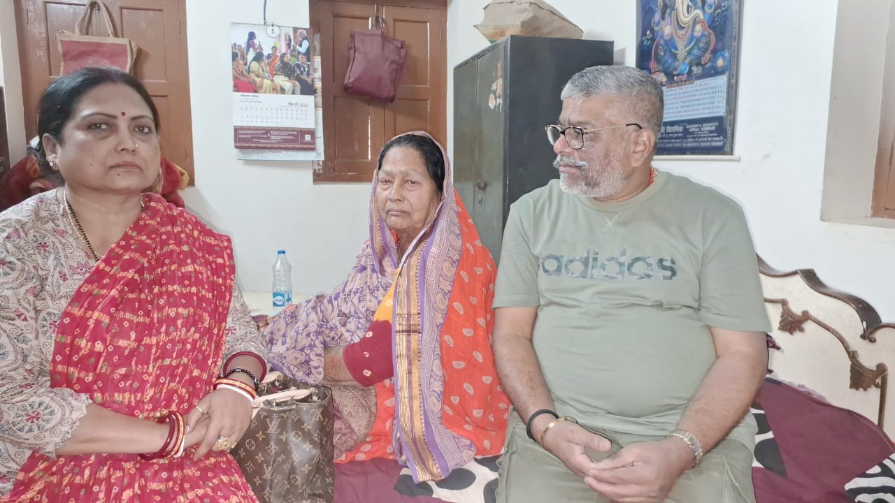 राज कुमारी देवी के संग शहरबन्नी स्थित आवास पर मौजूद उनकी छोटी बेटी आशा पासवान और दामाद साधु पासवान। जागरण