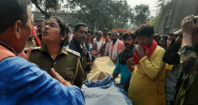 भाजपा कार्यकर्ताओं ने शव को लिया कब्जे में