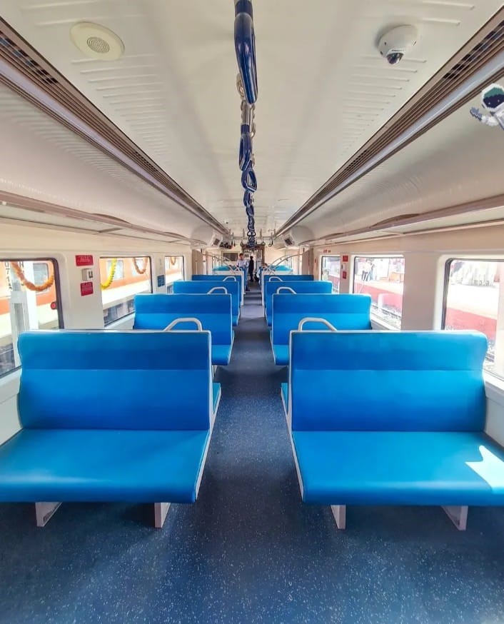 एल्यूमीनियम लगेज रैक, एलसीडी डिस्प्ले सूचना प्रणाली, मोबाइल चार्जिंग सॉकेट, डिफ्यूज एलईडी लाइटिंग, वातानुकूलित कोच है।