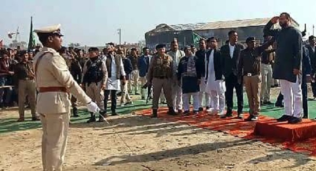 गार्ड ऑफ ऑनर की सलामी लेते उप मुख्यमंत्री तेजस्वी यादव। (फोटो- जागरण)