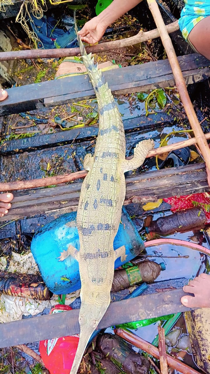 सुजीत ने बताया कि बाढ़ के कारण पूरे गांव चार से पांच फीट पानी घरों में है। रात घर में बच्चे चौकी पर सोए थे तभी एक घड़ियाल घर में घुसकर एक बच्चे पर हमला कर दिया। इसके बाद घड़ियाल को पकड़ा गया।