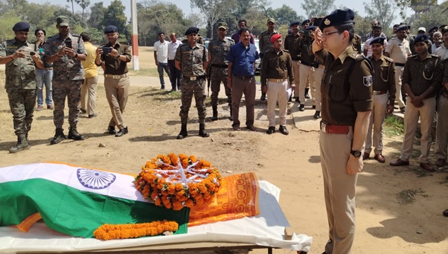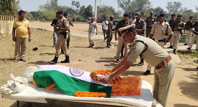 जमादार संतोष कुमार सिंह का पार्थिव शरीर पुलिस लाइन लाया गया