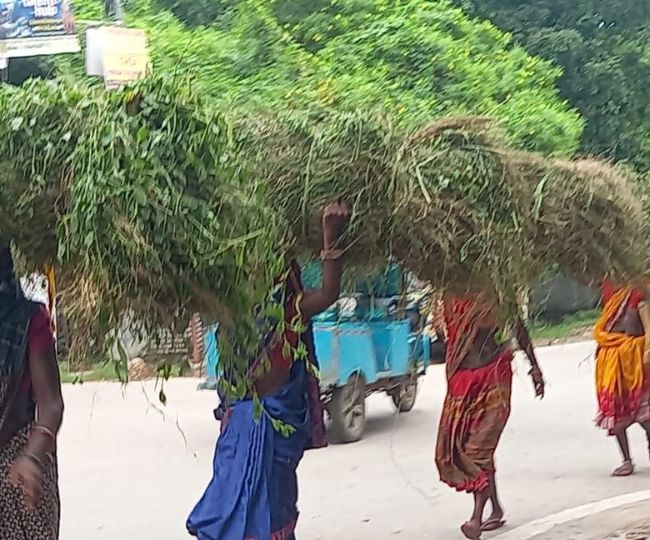 जमालपुर के रेल कॉलोनी से हर दिन प्रभावित इलाके से दर्जनों की संख्या में महिला पहुंचकर चारा लेकर पशुओं के लिए ले जाती है।