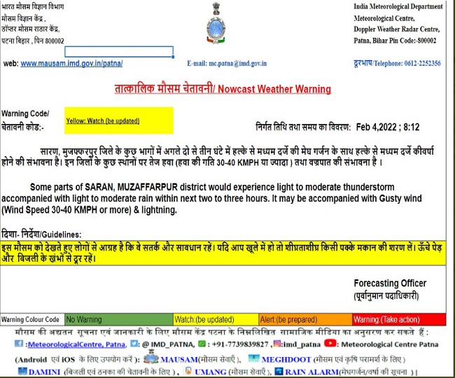 यह भी पढ़ें: क्या सरस्वती पूजा 2022 के दिन भी बारिश होगी? देखें, मुजफ्फरपुर का मौसम पूर्वानुमान