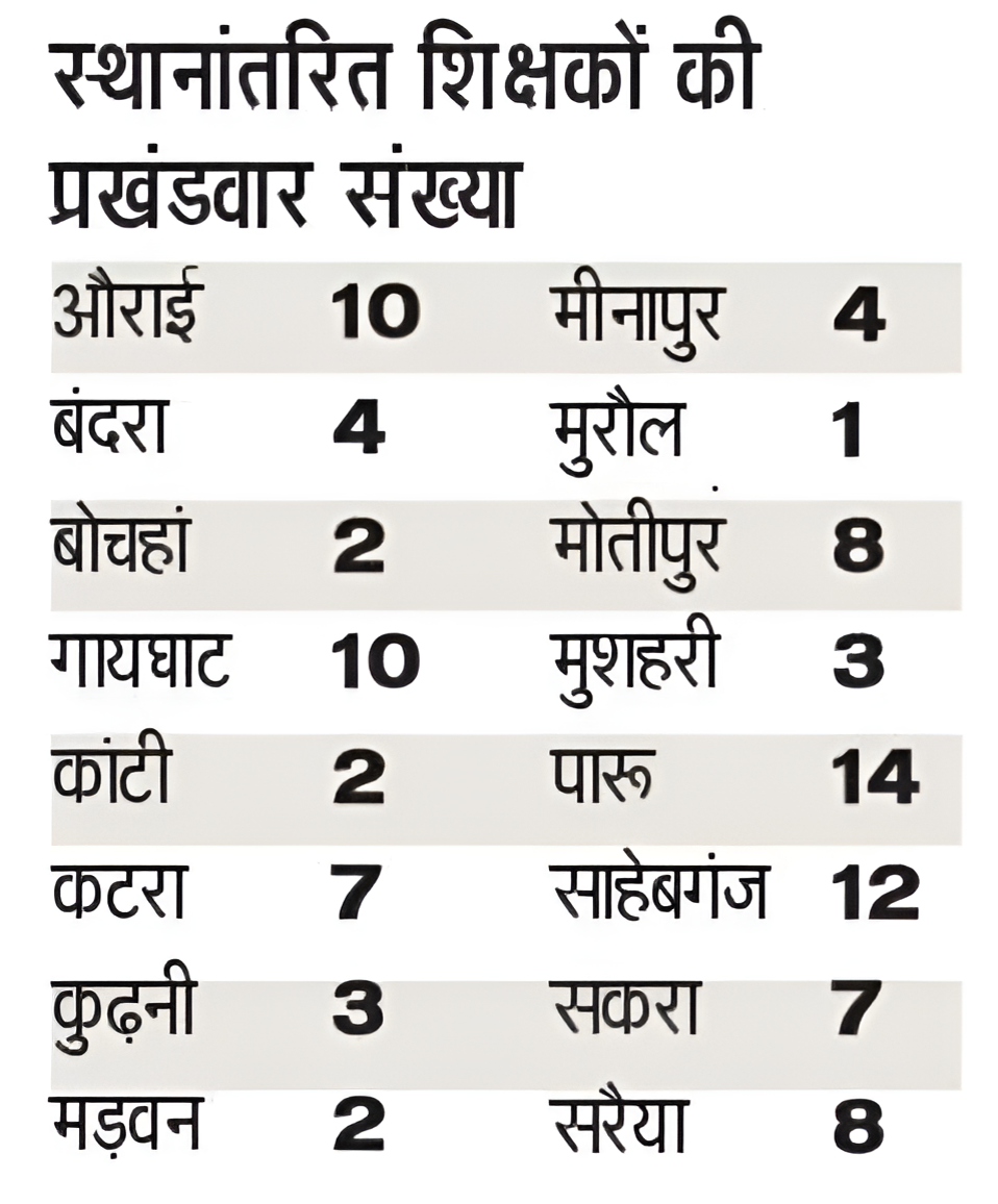 मुजफ्फरपुर के 96 शिक्षकों का ट्रांसफर ऐच्छिक जिले में हुआ: