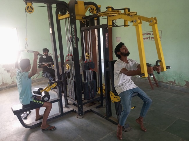 सकरा प्रखंड की भरथीपुर पंचायत में जिम करते युवा। फाेटो जागरण