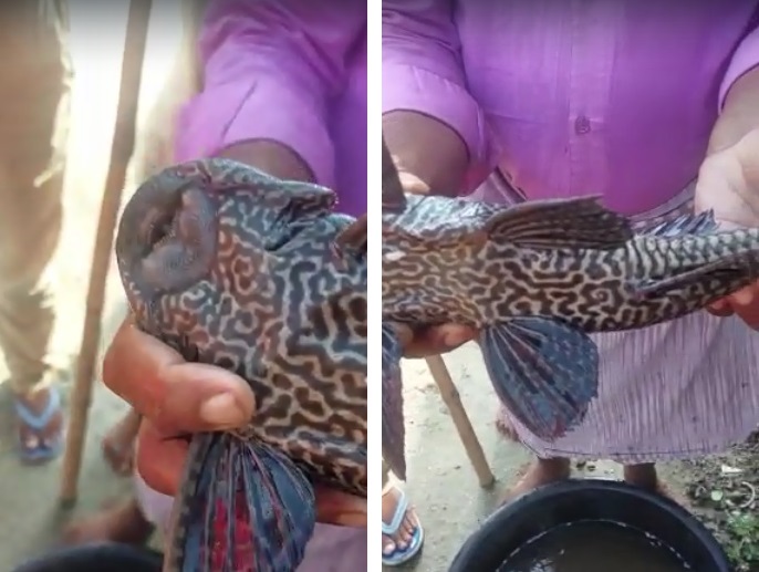 बिहार के बगहा में मिली विचित्र मछली, चार आंखें और शरीर पर बाघ जैसी धारियां