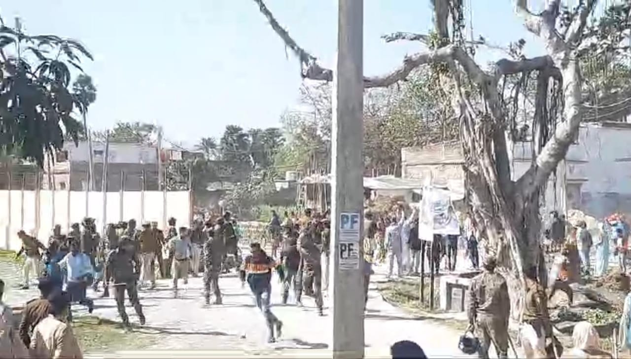 इस घटना में कई महिलाओं और पुरुषों को चोटें लगी हैं। पुलिस की पिटाई से दर्जनों ग्रामीण जख्मी हो गए हैं। आधा दर्जन पुलिसकर्मी भी घायल हैं। सभी की चिकित्सा स्थानीय स्तर पर कराई जा रही है। मामले में दो लोगों को हिरासत में लिया गया है।