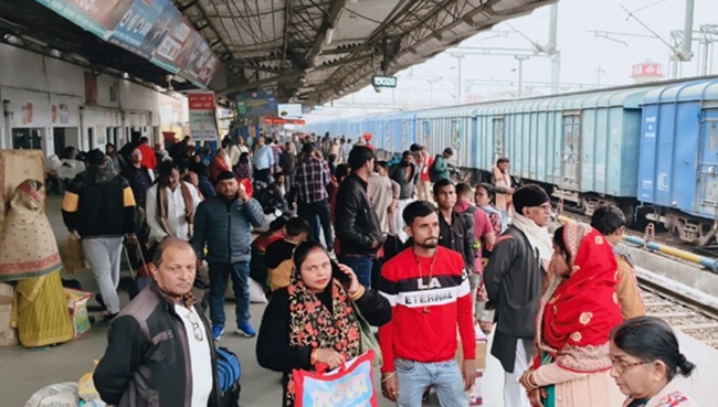 रेलवे स्टेशन पर उमड़ी श्रद्धालुओं की भीड़