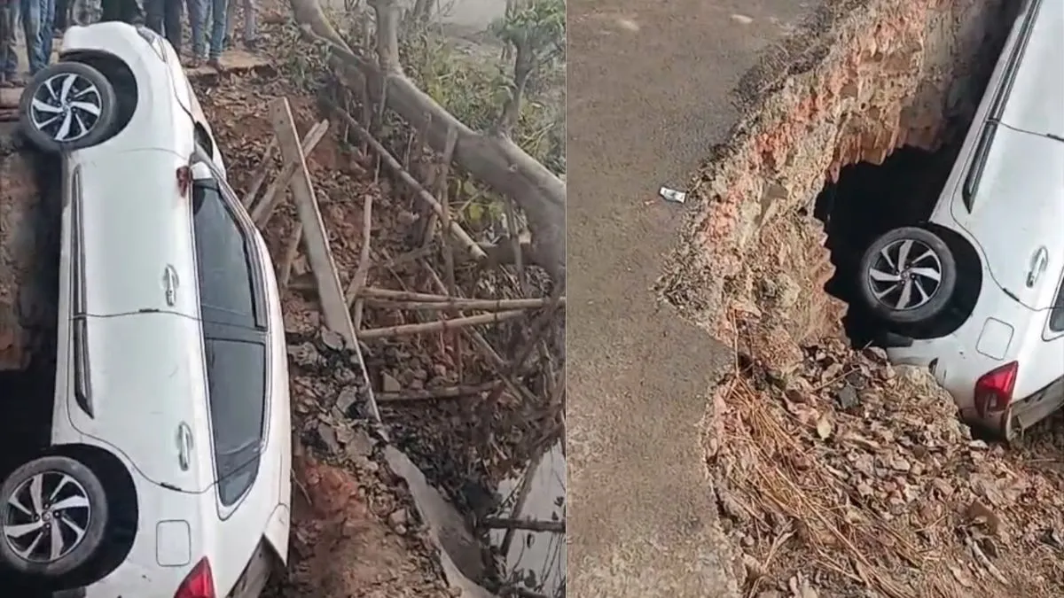 मुजफ्फरपुर में टूटी सड़क बनी हादसे की वजह, गहरे गड्ढे में गिरी कार; दो युवक गंभीर घायल