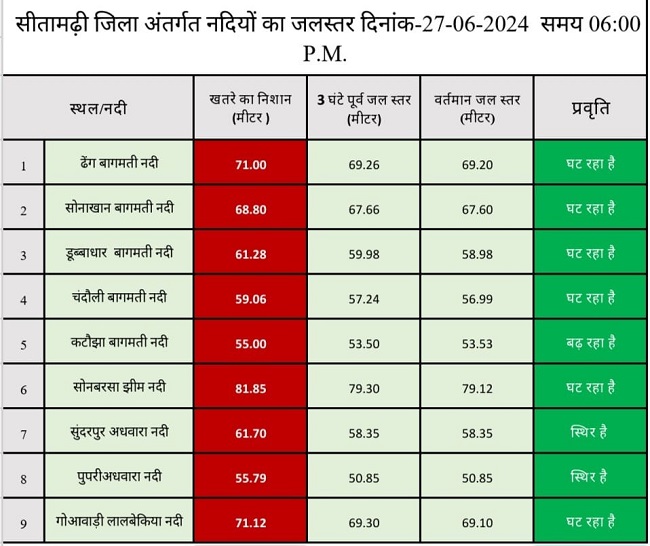 नदी जहां अभी अपने पेट के अंदर ही बह रही है, वहीं भूतही बलान एवं तिलयुगा का पानी निचले इलाकों में फैल गया है।