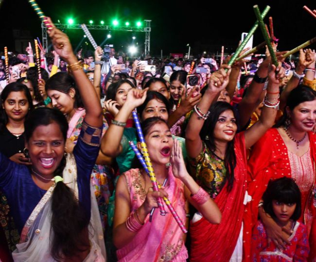 करीब तीन घंटे तक चले इस कार्यक्रम का लोगों का खूब आनंद उठाया। पारंपरिक से लेकर आधुनिक परिधानों के बीच ढोल-नगाड़ों की गूंज। कहीं हाथों में डांडिया लिए जोड़े तो कहीं डीजे की धुन पर थिरकते युवा।