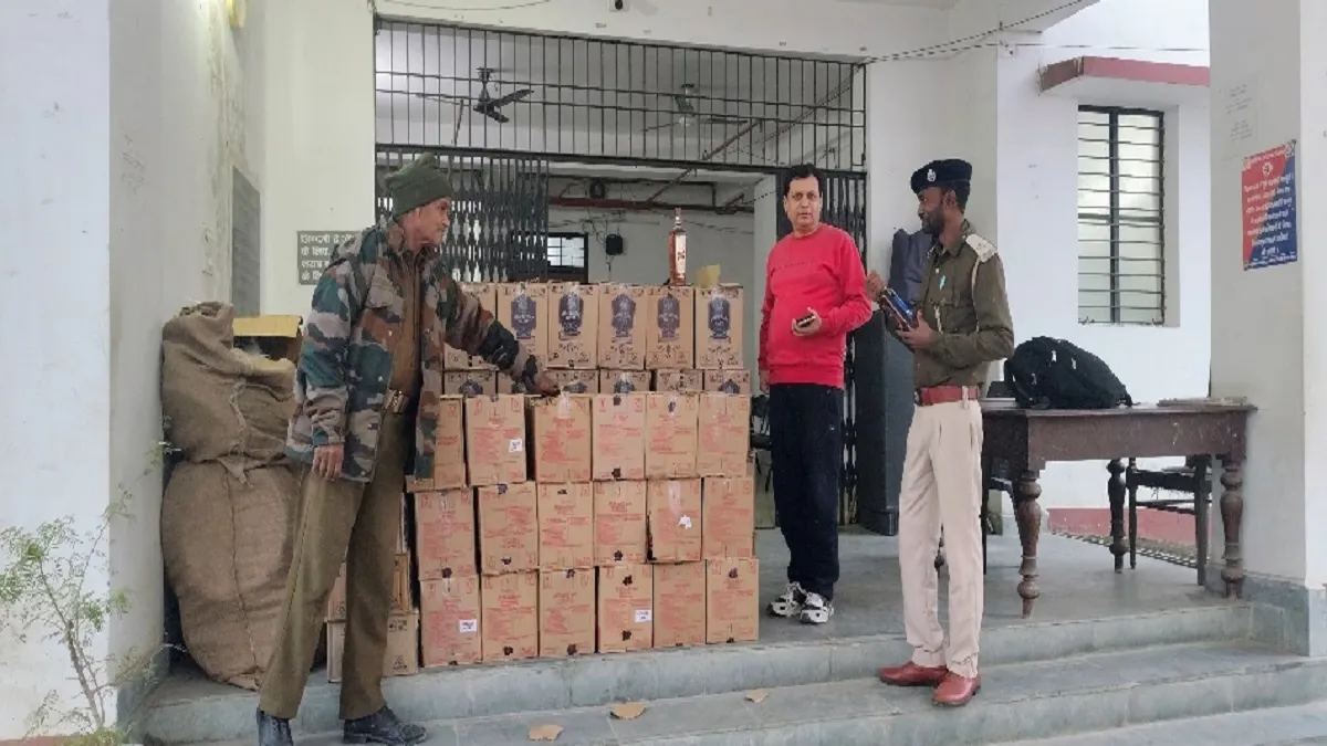 मुजफ्फरपुर में जब्त शराब के साथ पदाधिकारी। जागरण
