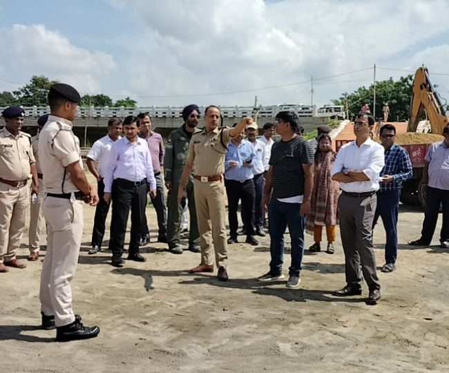 हेलीपैड का निरीक्षण करते डीएम सुब्रत कुमार सेन और एसएसपी सुशील कुमार l जागरण