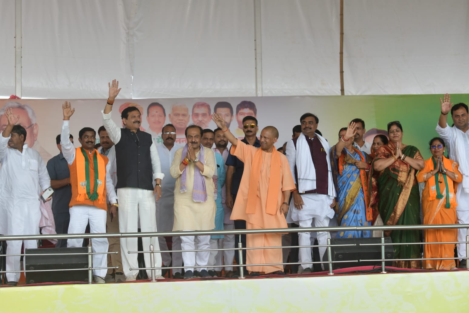 एक तरफ सीएम योगी ने विकास कार्यों के बलबूते एनडीए गठबंधन के लिए वोट की अपील की तो दूसरी तरफ कांग्रेस व राजद को खूब धोया।