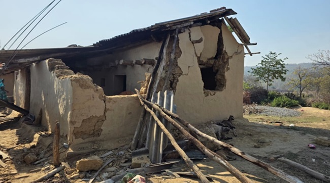 हाथियों के आतंक से क्षतिग्रस्त मकान।