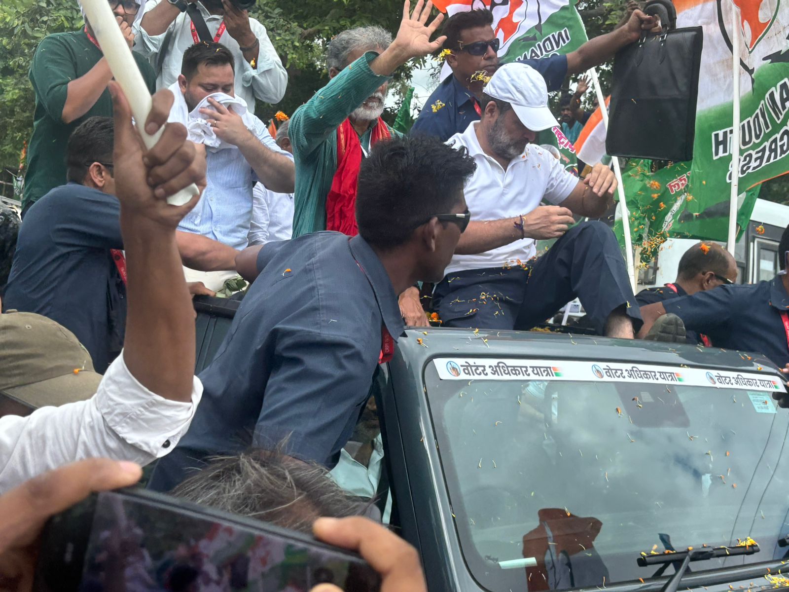 कांग्रेस सांसद और लोकसभा में विपक्ष के नेता राहुल गांधी ने कहा, "बिहार में लाखों लोग हैं जिन्होंने वोट दिया, उनके नाम मतदाता सूची में थे और उनके नाम मतदाता सूची से हटा दिए गए। चुनाव आयोग और भाजपा के बीच साझेदारी है। वे एक साथ वोट चुरा रहे हैं। नरेंद्र मोदी, अमित शाह और चुनाव आयुक्त आपके वोट छीन रहे हैं। तेजस्वी, मैं और अन्य नेता उन्हें बताना चाहते हैं कि हम आपको बिहार के वोट चोरी नहीं करने देंगे। उन्होंने महाराष्ट्र, हरियाणा, मध्य प्रदेश में चुनाव चुराए हैं।"