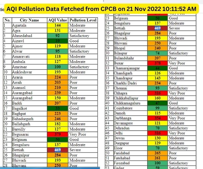 बिहार के दो शहर तो रेड जोन से भी आगे निकल चुके हैं। बेतिया में 469, मोतिहारी में 410 एयर क्वालिटी इंडेक्स दर्ज किया गया है। 400 से अधिक एक्यूआइ वाले पूरे देश में केवल ये दोनों शहर ही हैं। इन शहरों की वायु गुणवत्ता सांस के मरीजों के लिए बेहद नुकसानदेह साबित हो सकती है।