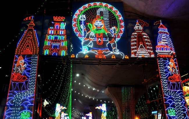 नेहरू पथ स्थित खाजपुरा बाजार में रंगीन रोशनी से जगमगाया सड़क। फोटो- जागरण