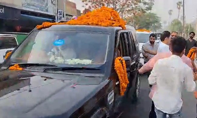 अनंत सिंह समर्थकों के सामने हाथ जोड़ते नजर आए। वहीं, गाड़ी में ही लोग फूलों की बारिश कर उनका स्वागत करने लगे।