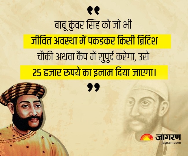पटना, जागरण डिजिटल डेस्क। 'बाबू कुंवर सिंह को जो भी जीवित अवस्था में पकड़कर किसी ब्रिटिश चौकी अथवा कैंप में सुपुर्द करेगा, उसे 25 हजार रुपये इनाम का दिया जाएगा।'