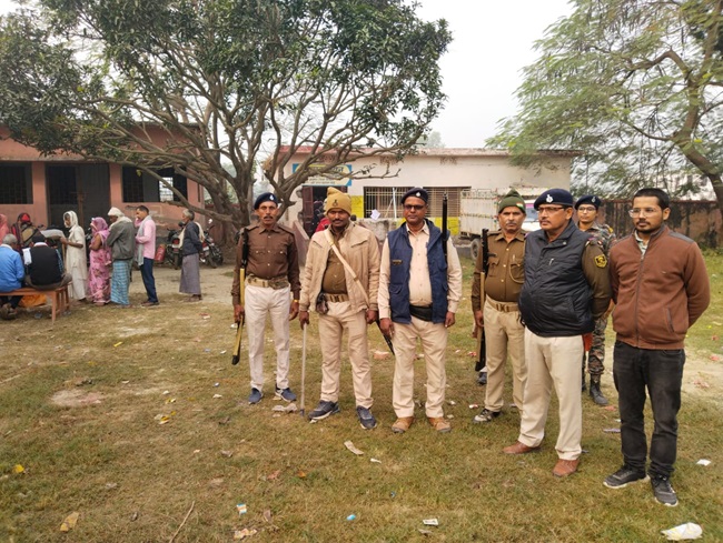 शिवहर में पैक्स वोटिंग के लिए तैनात पुलिस।