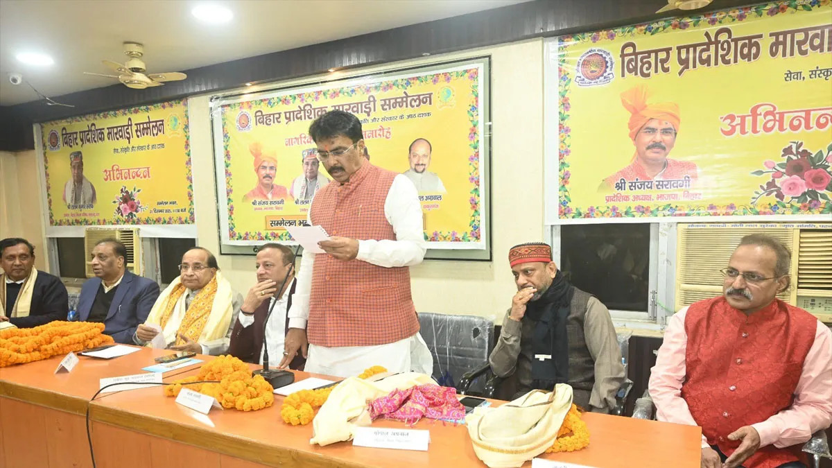 मारवाड़ी सम्मेलन के अभिनंदन समारोह में भाजपा के प्रदेश अध्यक्ष संजय सरावगी। जागरण