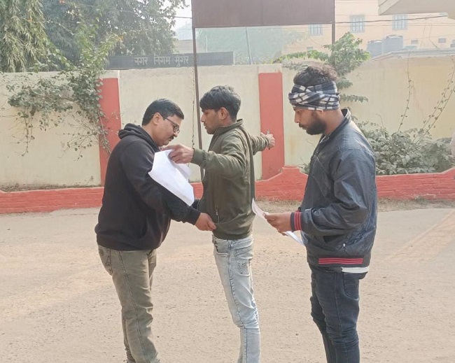 बांका : परीक्षा केंद्र के बाहर एडमिट कार्ड के साथ परीक्षार्थी।