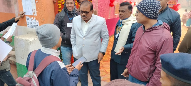 खगड़िया : आदर्श परीक्षा केंद्र मध्य विद्यालय हाजीपुर उत्तरी में मोबाइल लेकर जा रहे छात्र को रोकते डीइओ।