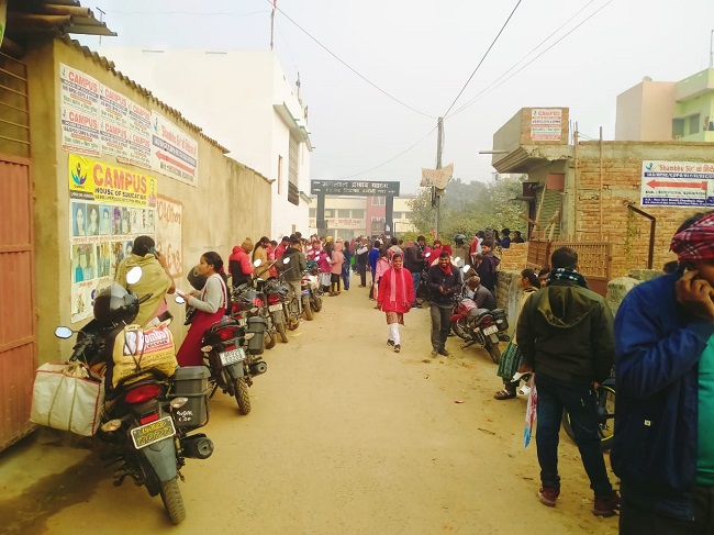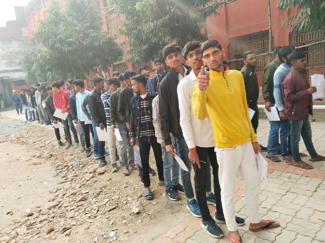 गया में परीक्षा केंद्र पर पहुंचे परीक्षार्थी।