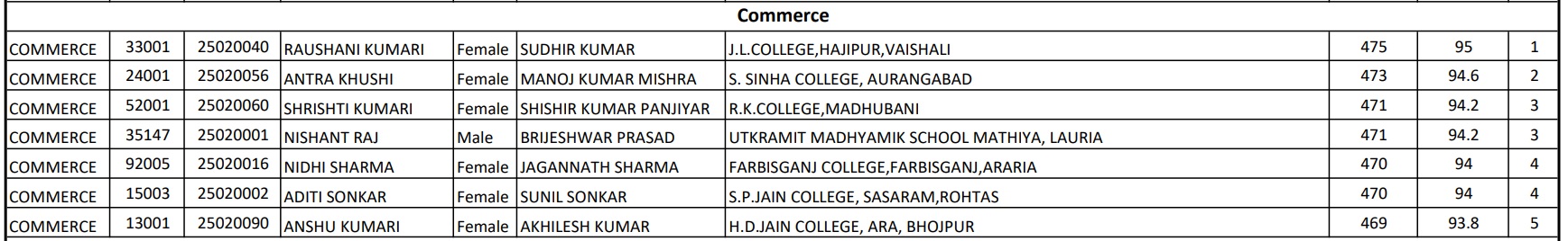 बिहार में कॉमर्स के टॉपरों की लिस्ट